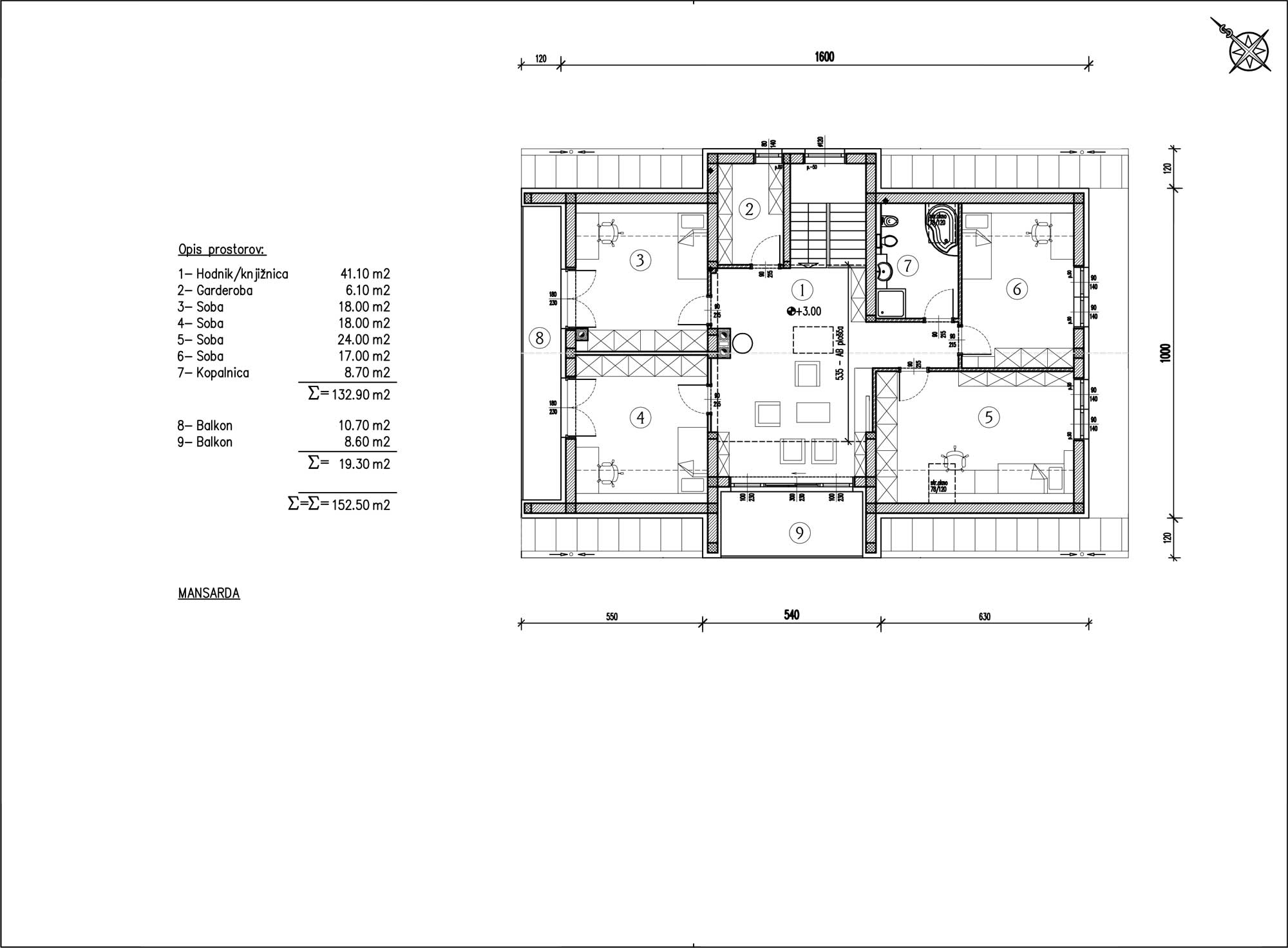 1364 April 14, 2015April 28, 2015 admin Osnovni podatki: Projekt številka 1364 - Skupna neto površina stanovanjskega objekta 453,40 m2 - Etažnost: K + P + PO - Lokacija: Ljubljana - Naročnik: Privat - Leto izvedbe projekta: 2013 Galerija